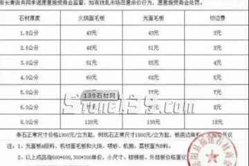 通知:內鄉縣石材商會商討決定從2020年3月5日起梨花白、梨花紅板材價格再次上漲,所有石材加式企業共同遵守市場秩序,杜絕惡意降價行為。厚度光面毛板(元/平方)火燒面毛板(元/平方)切邊費(元/平方)1.5cm35/…